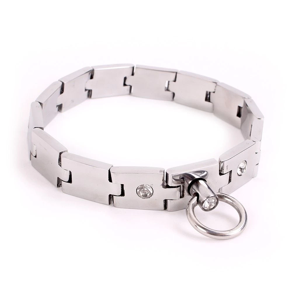 Laat zien dat je onderdanig bent met deze schitterende halsband om je nek heen. De halsband is voorzien van schitterende diamantjes aan de voorkant en de d-ring aan de voorkant zorgt voor een onderdanige look. Laat je aanlijnen en voel hoe er aan je halsband wordt getrokken door je meester. Hij is los en vast te zetten met een inbussleutel die meegeleverd wordt.