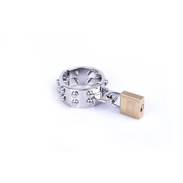 Metalen penisring met slot en spikes. Sla de penis van jouw onderdaan in de boeien met deze metalen penisring met slot. Deze penisring laat overduidelijk zien dat er niet te sollen valt met jouw meesterschap! De cockring heeft spikes aan de binnenkant wat zorgt voor een spannende prikkeling. Deze set is gemaakt van roestvrij staal en staat garant voor top kwaliteit. Haal het slot van deze spannende metalen penisring er pas vanaf wanneer jouw onderdaan voldaan heeft aan al jouw wensen!