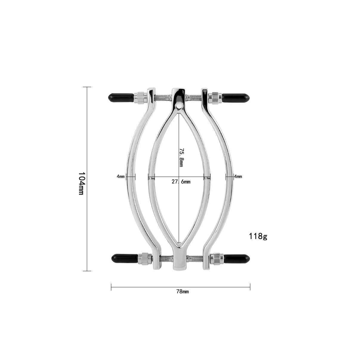 Ook geeft het de vrouw een gevoel van overgave en als je er een vibrator tegenaan houdt, trilt de hele vagina. De klem is aan te draaien met schroeven zodat je zelf kunt bepalen hoe strak het moet zitten. Het rvs materiaal is duurzaam en gaat dus lang mee.