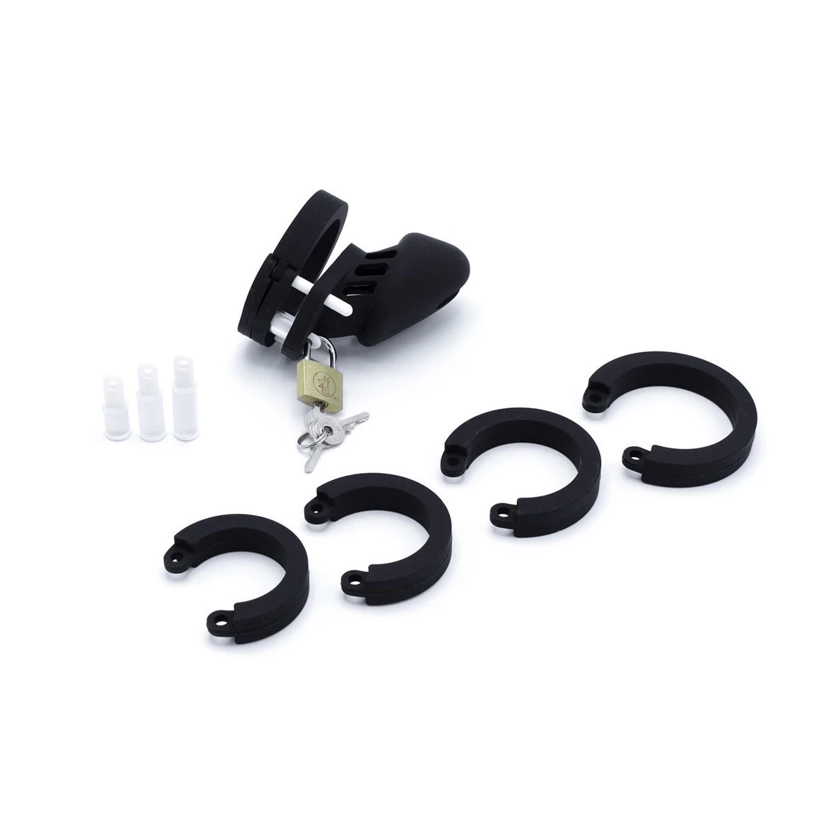 De kuisheidsgordel is geschikt voor bijna alle mannen en wordt geleverd met 5 verwisselbare penisringen van verschillende afmetingen. Daarnaast zijn er 4 witte afstandhouders voor verschillende maten penislengtes.